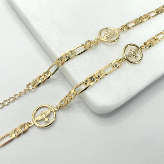 Necklace Figaro Chain Circle Dove 4mm 18k Gold Filled