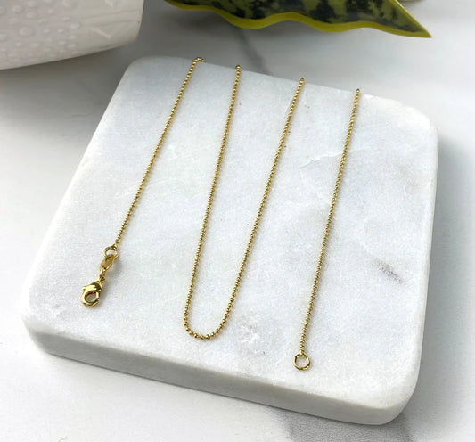Chain Bead Ball Link 1mm 16" or 18" - 18k Gold Filled