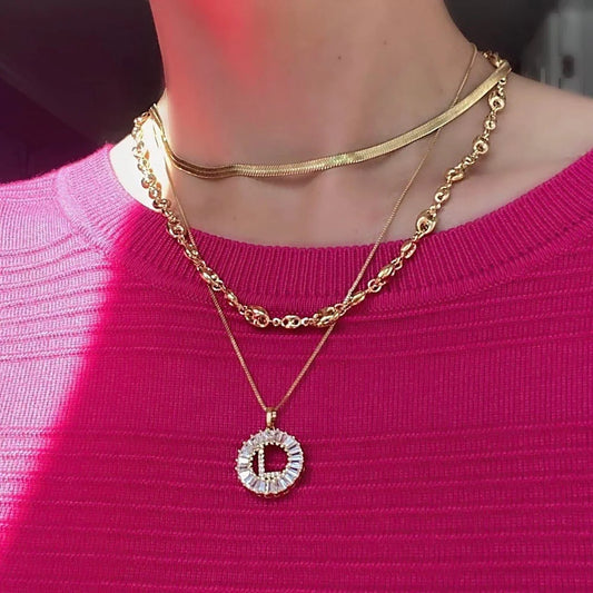 Chain and Pendant Set. Box Link Chain with Boy and Girl Pendant in Cubic Zirconia 18k Gold Filled