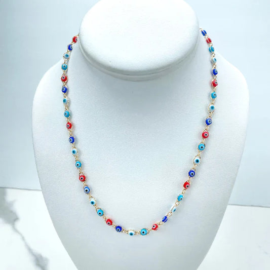 Necklace Colorful, Multicolor, Evil Eye Shape Linked 18k Gold Filled