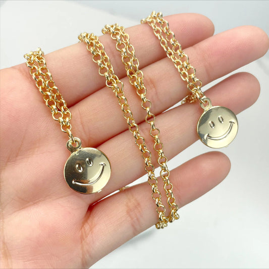 Necklace Rolo Chain Beaded with Enamel Red or Blue & Hearts Charms 18k Gold Filled