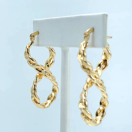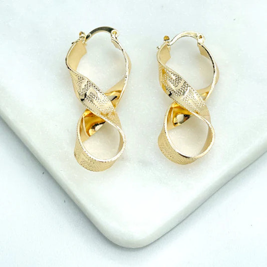 Earrings Textured Infinity Twisted Dangle. 18k Gold Filled