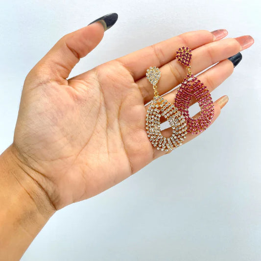 Earrings Pink or Clear Cubic Zirconia Teardrop Shape Dangle 18k Gold Filled