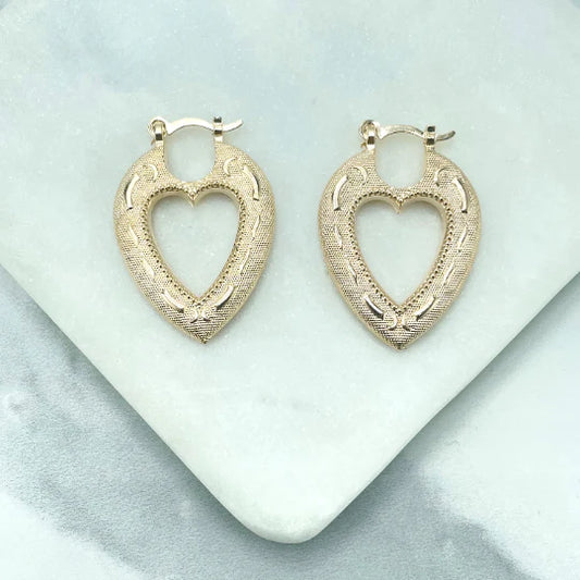 Earrings Hoop Texturized Cutout Heart Shape. Romantic. 18k Gold Filled