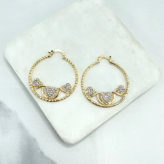 Earrings Hoop Texturized with 3 Clear Cubic Zirconia Hearts Detail 18k Gold Filled 490