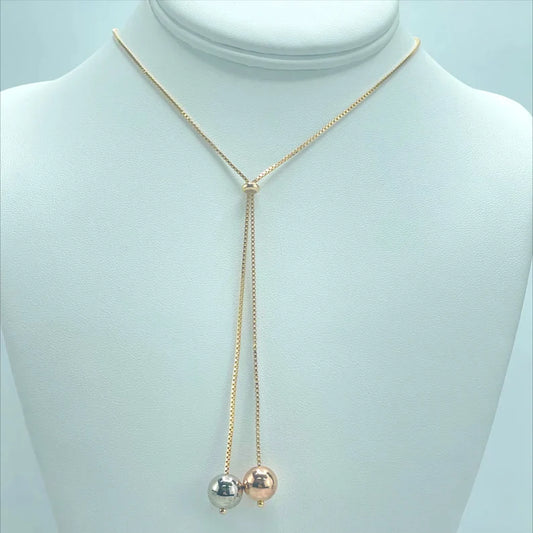 Earrings or 30 inches Necklace with 1.2mm Box Chain Three Tone Adjustable Two Tone Balls 18k Gold Filled