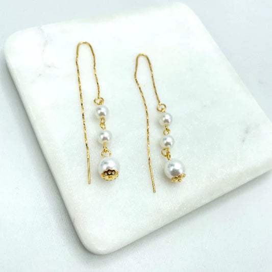 Earrings Large Drop Pearls Threader 18k Gold Filled