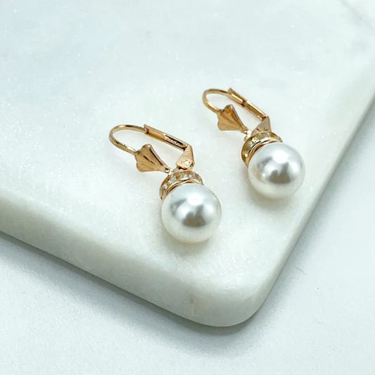 Earrings Pearl Drop Dangle, Classic. 18k Gold Filled