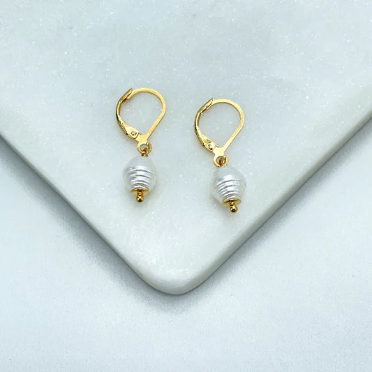 Earrings Simulated Baroque Pearl Hoop, Pearl Drop, Dangle. 18k Gold Filled