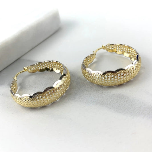 Earrings Two Tone Textured Hoop 18k Gold Filled