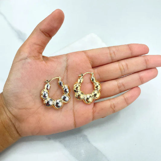 Earrings Hoop Croissant Inspiration, Ball Design in Gold, or 2 Tones Colors 18k Gold Filled