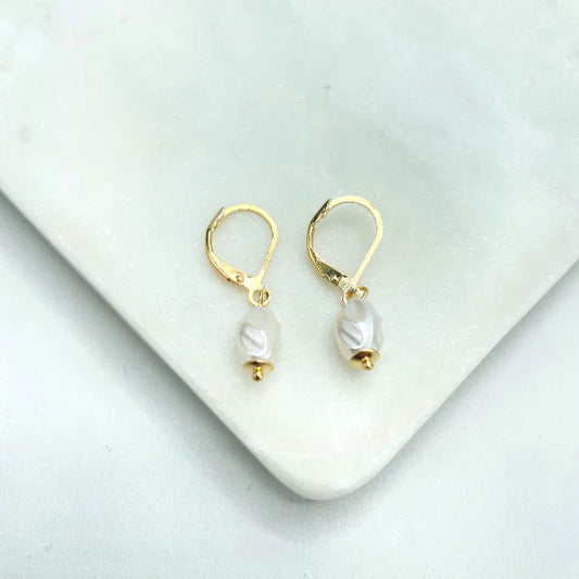 Earrings Simulated Baroque Freshwater Pearl, Hoop Huggie, Pearl Drop Dangle. 18k Gold Filled