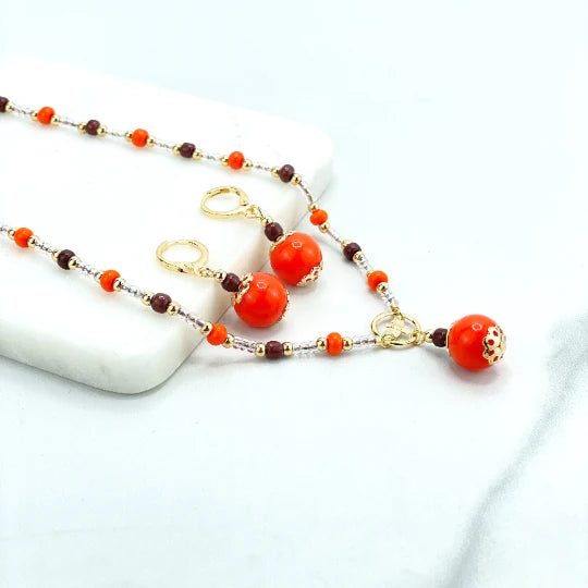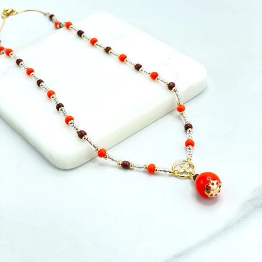 Necklace Beaded and Cutout Dove Charm, 18k Gold Filled