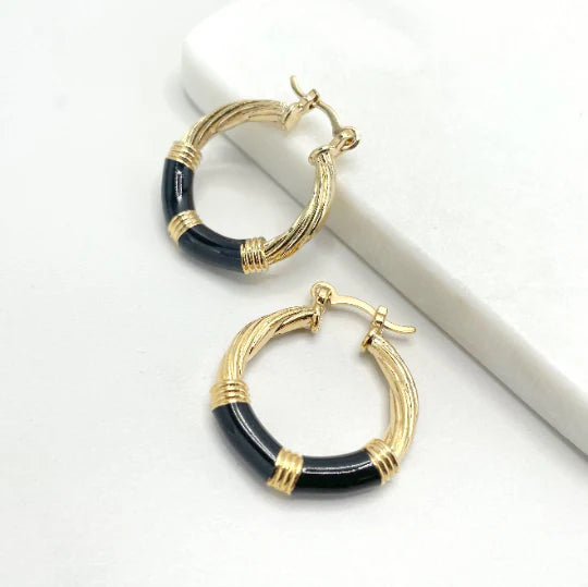 Earrings Hoop with Black Enamel Twisted Hoop 18K Gold Filled