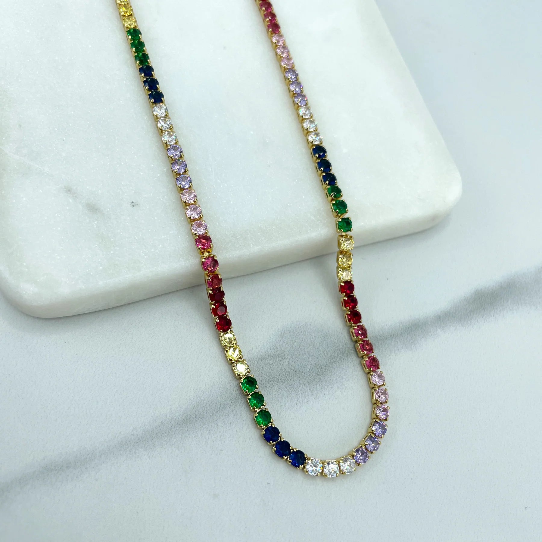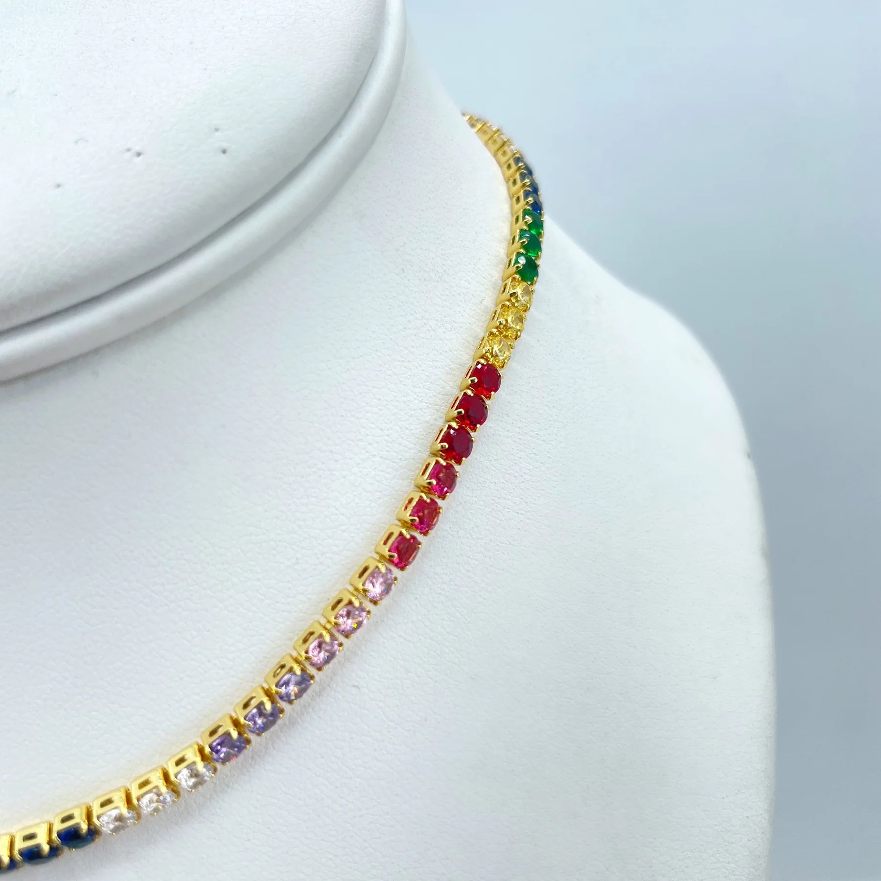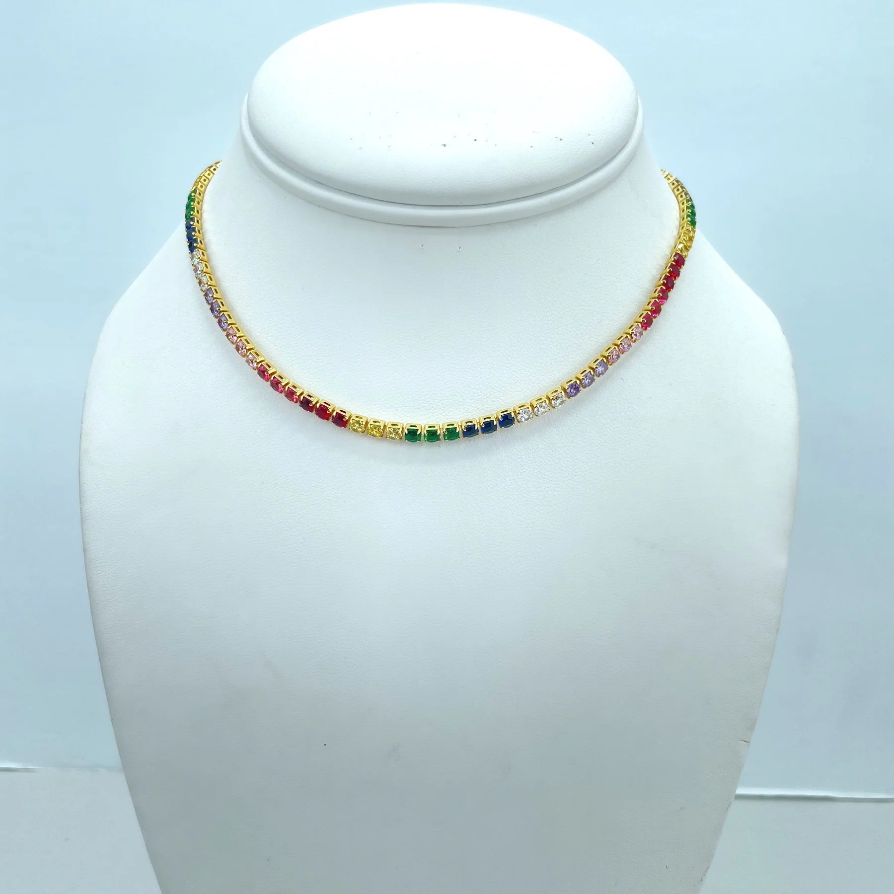 Necklace Rainbow Tennis Cubic Zirconia Choker with Extender 18k Gold Filled
