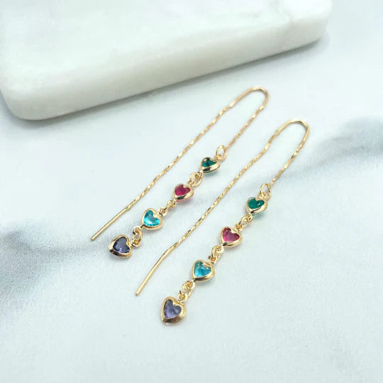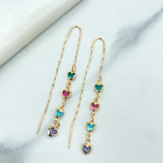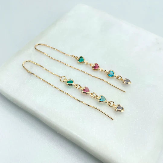 Earrings Multicolor Hearts Shape Drop Threader 18k Gold Filled
